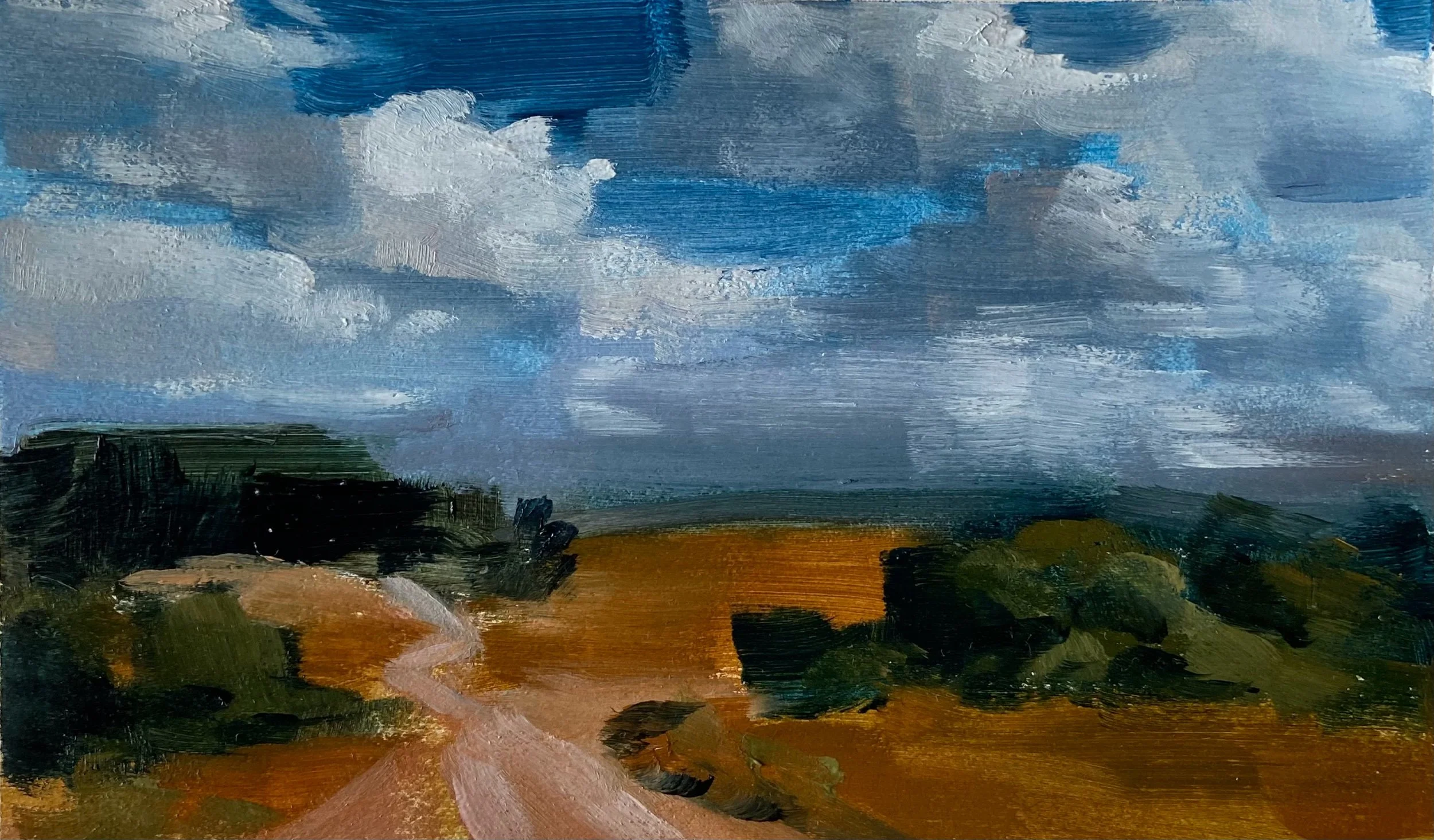 Image 1 of 1 Summer Clouds $75.00 Oil on paper; matted to 8x10”. Add To Cart Added! Oil on paper; matted to 8x10”.