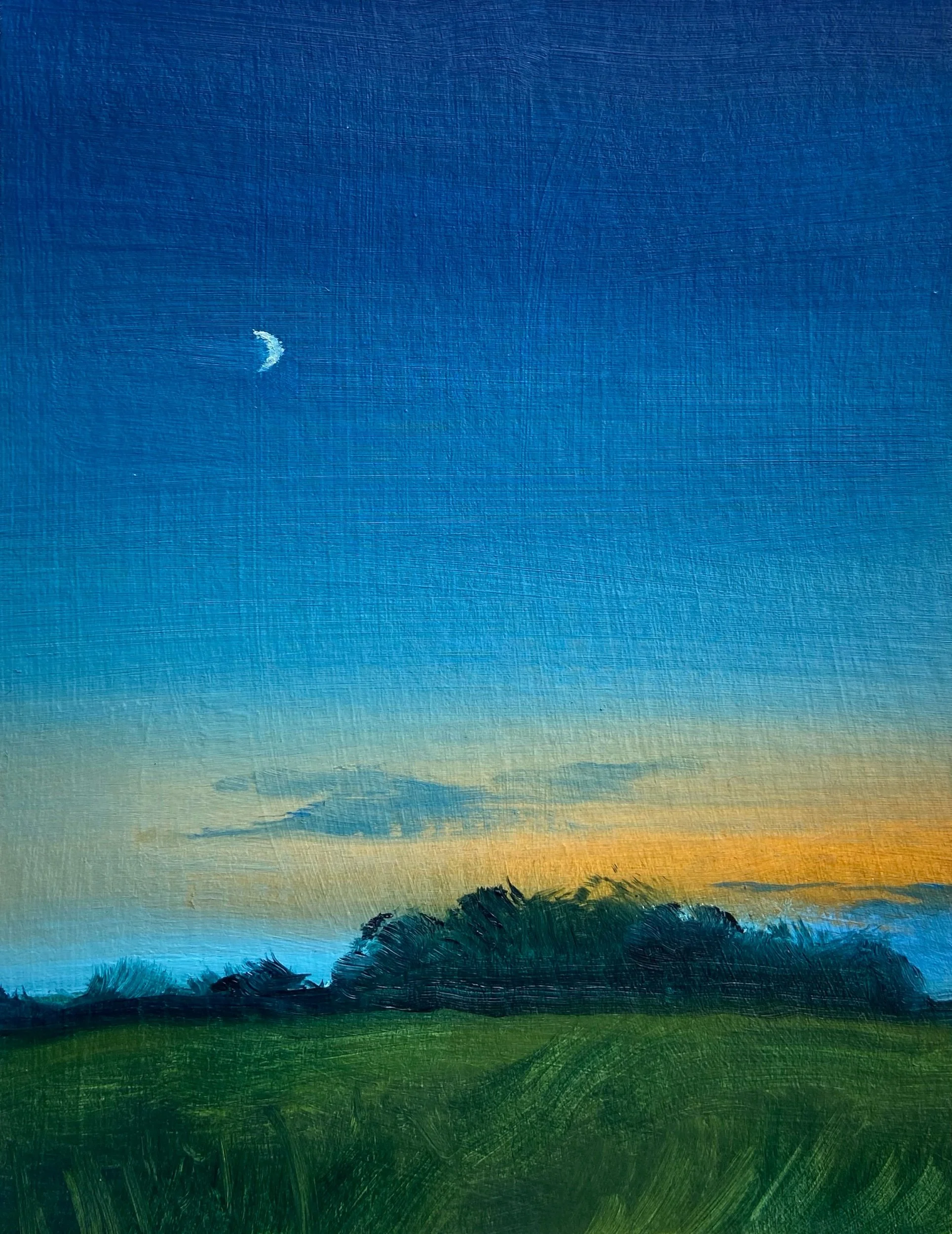 Image 1 of 1 Waxing Crescent $80.00 Oil on paper, matted to 8x10”. Add To Cart Added! Oil on paper, matted to 8x10”.